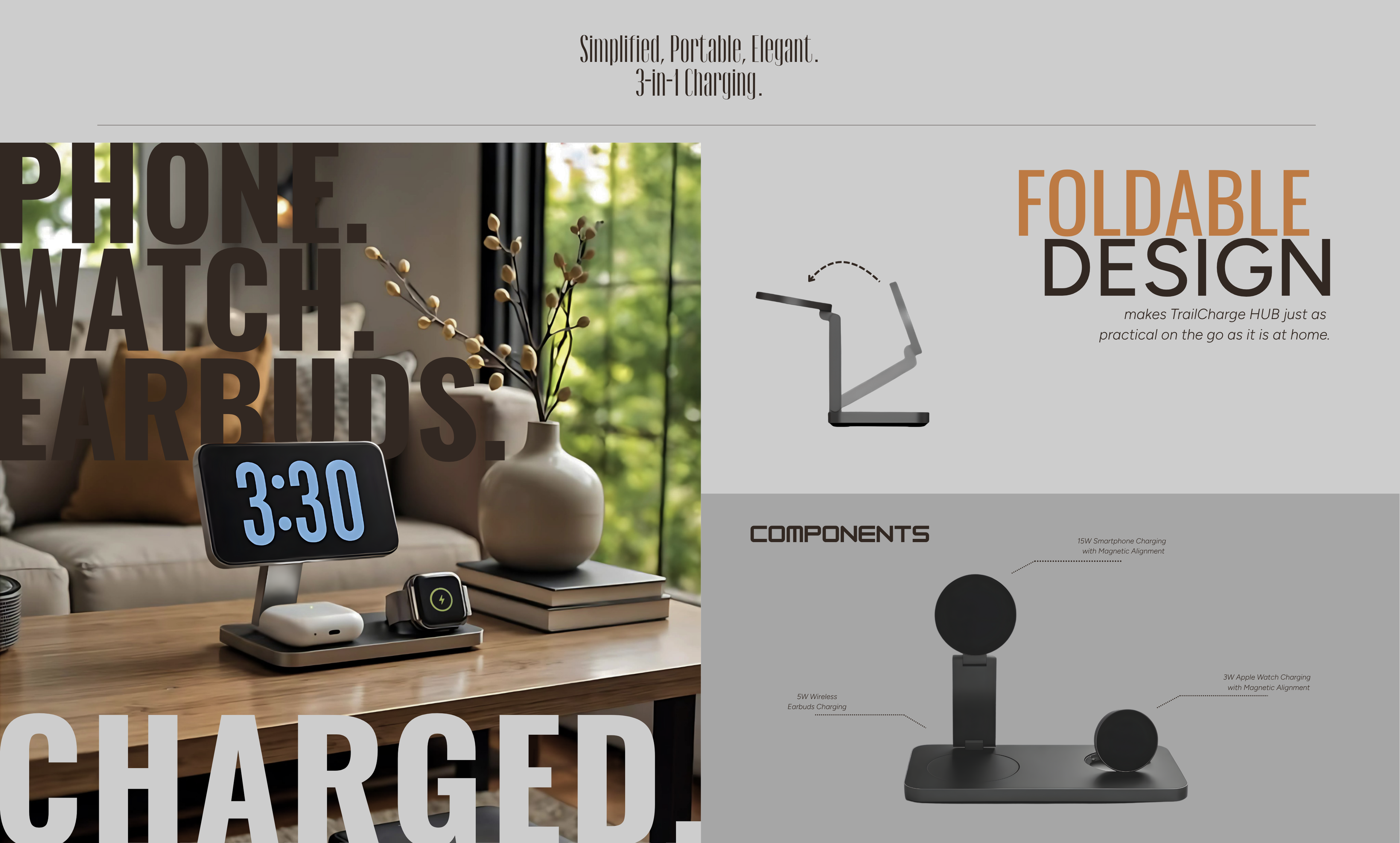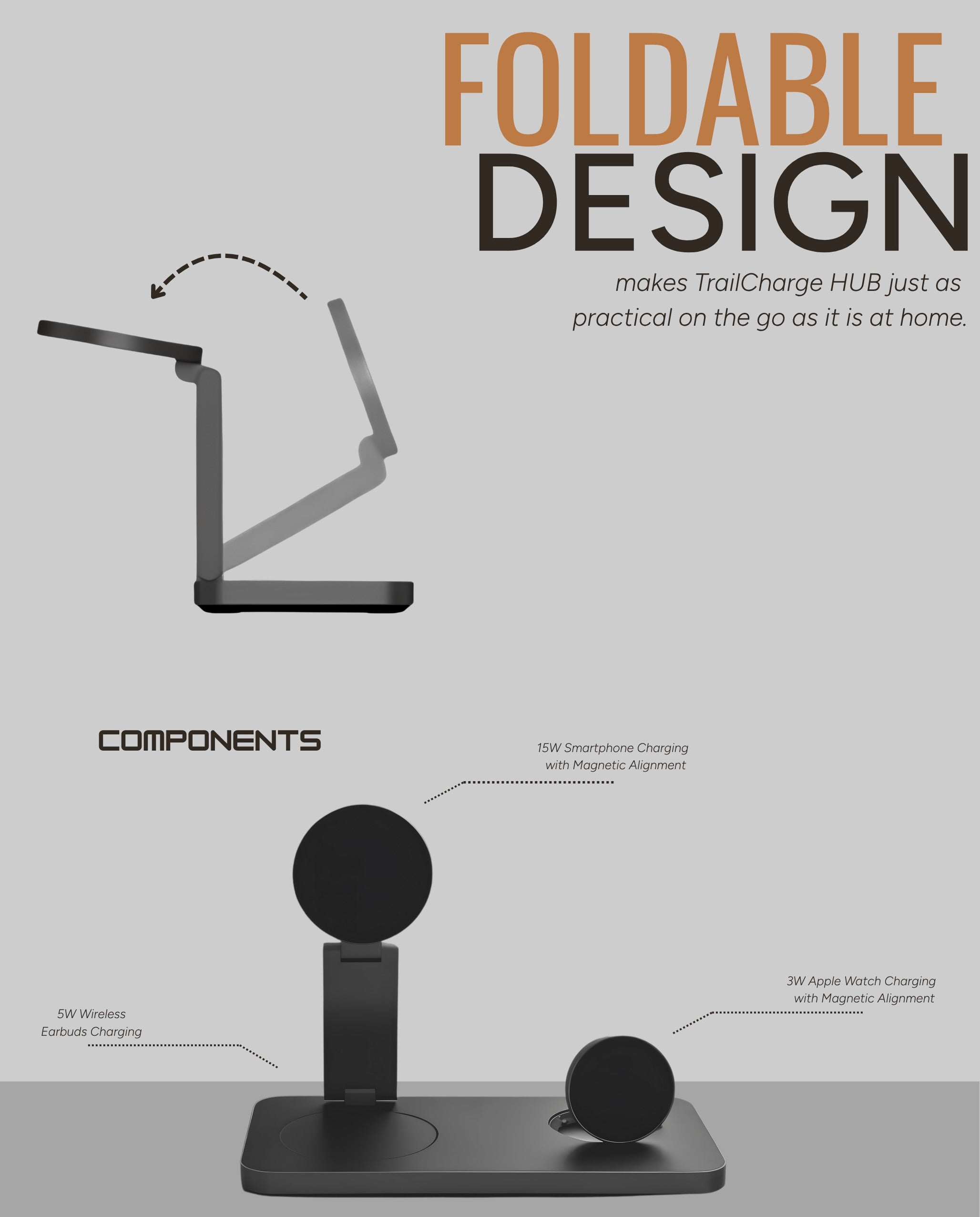 TrailCharge HUB - Wireless 3-in-1 Charging Station with Magnetic Alignment