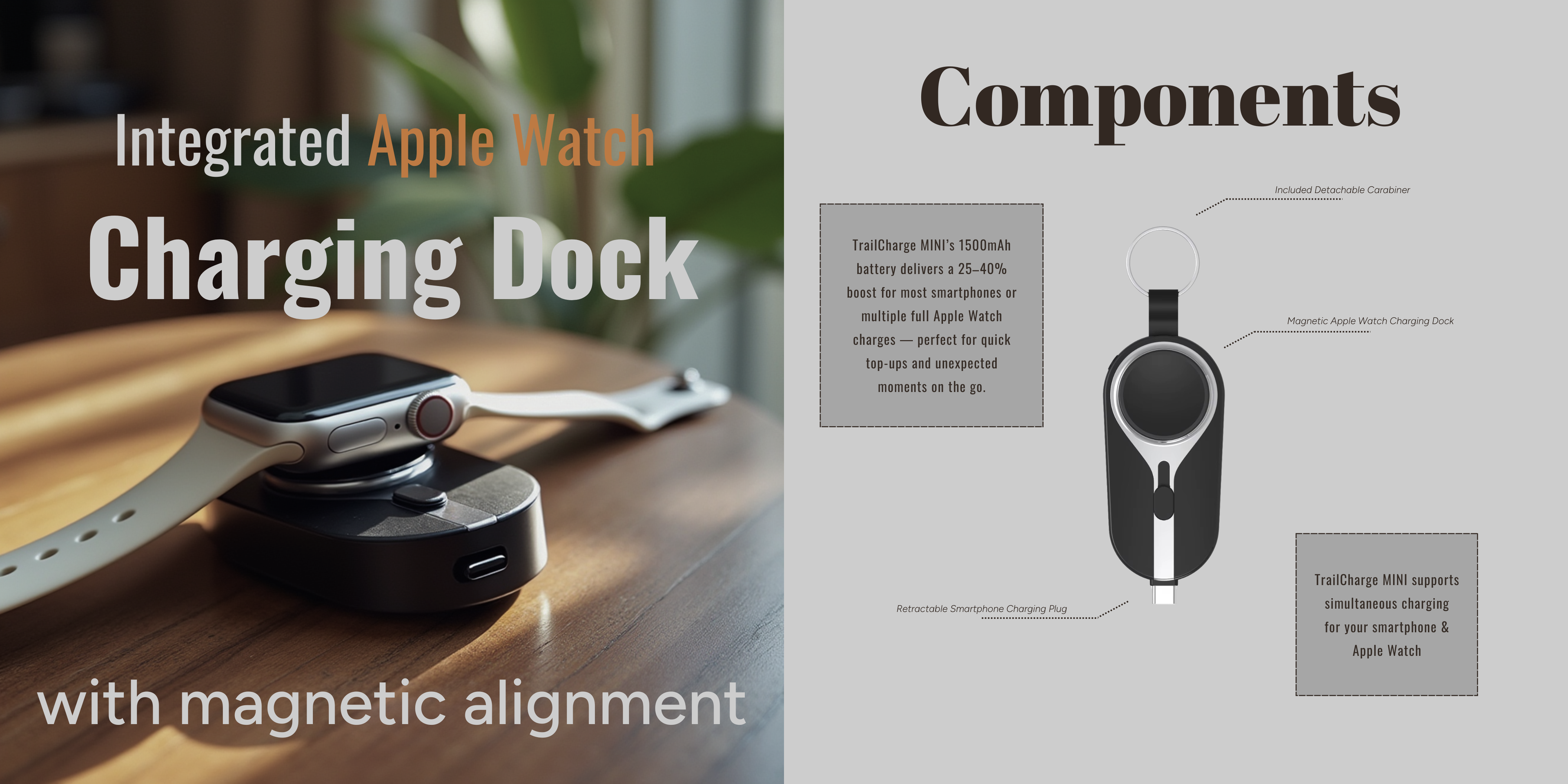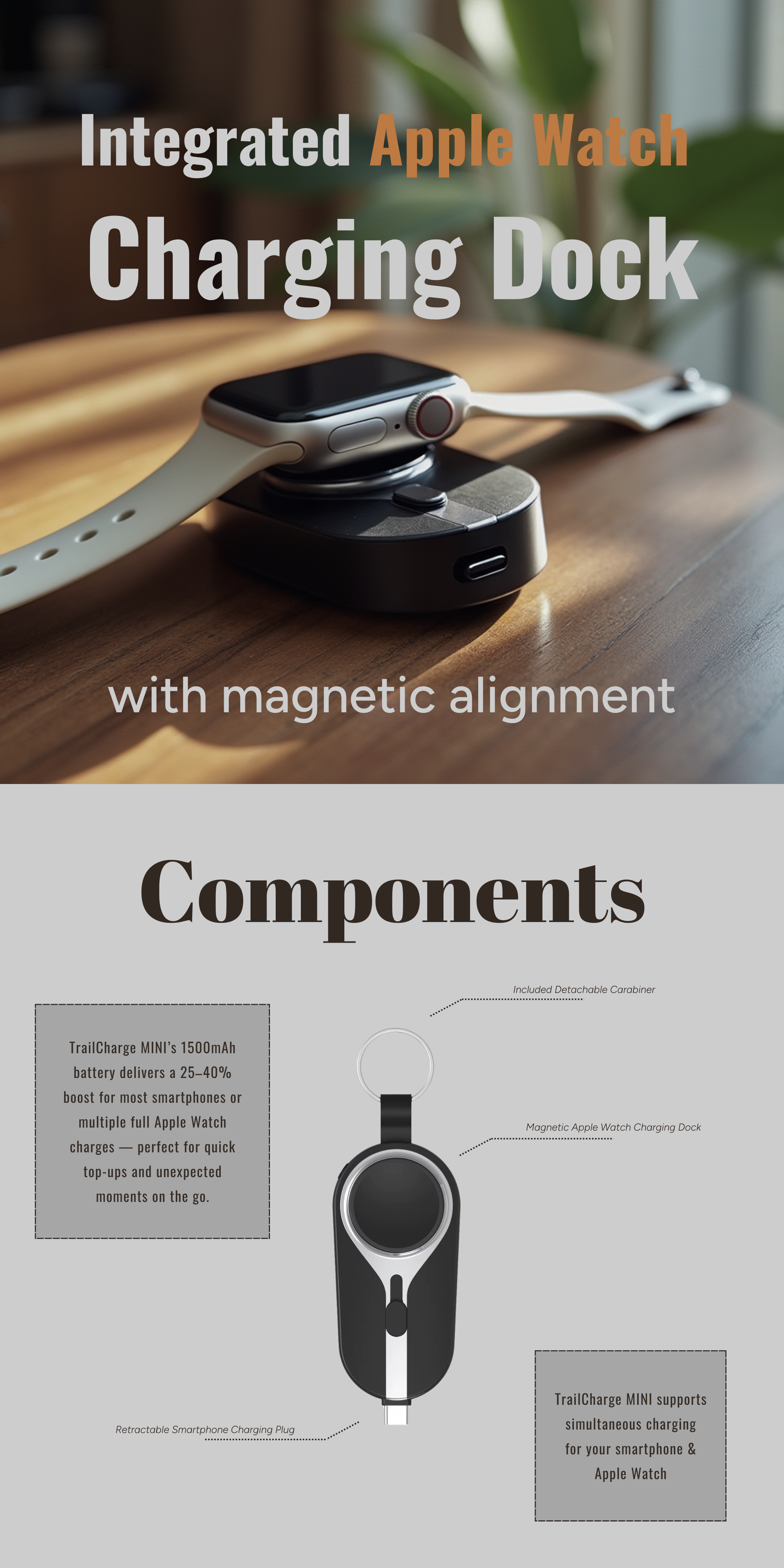 TrailCharge MINI - 1500mAh Mini Keychain Charger with Magnetic Dock for Apple Watch
